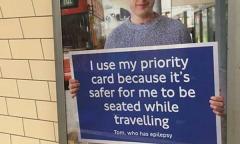 Epilepsy featured as part of Transport For London's poster campaign to raise awareness of the priority card scheme encouraging travellers to give up their seat for those with invisible disabilities.