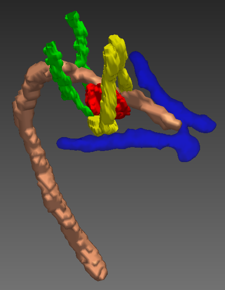A treatment option is to destroy the abnormal area with laser light from a probe inserted into the brain. The challenge is to find a safe trajectory that does not damage critical structures or blood vessels in the brain. We have developed 3D-multimodal imaging to display these structures and computer-assisted navigation to find safe trajectories.