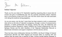 Epilepsy Society's chief executive, Clare Pelham, has welcomed a second letter from the Department of Health in response to her letter to health secretary Jeremy Hunt, calling for mandatory reviews for women and girls of childbearing age taking sodium valproate.